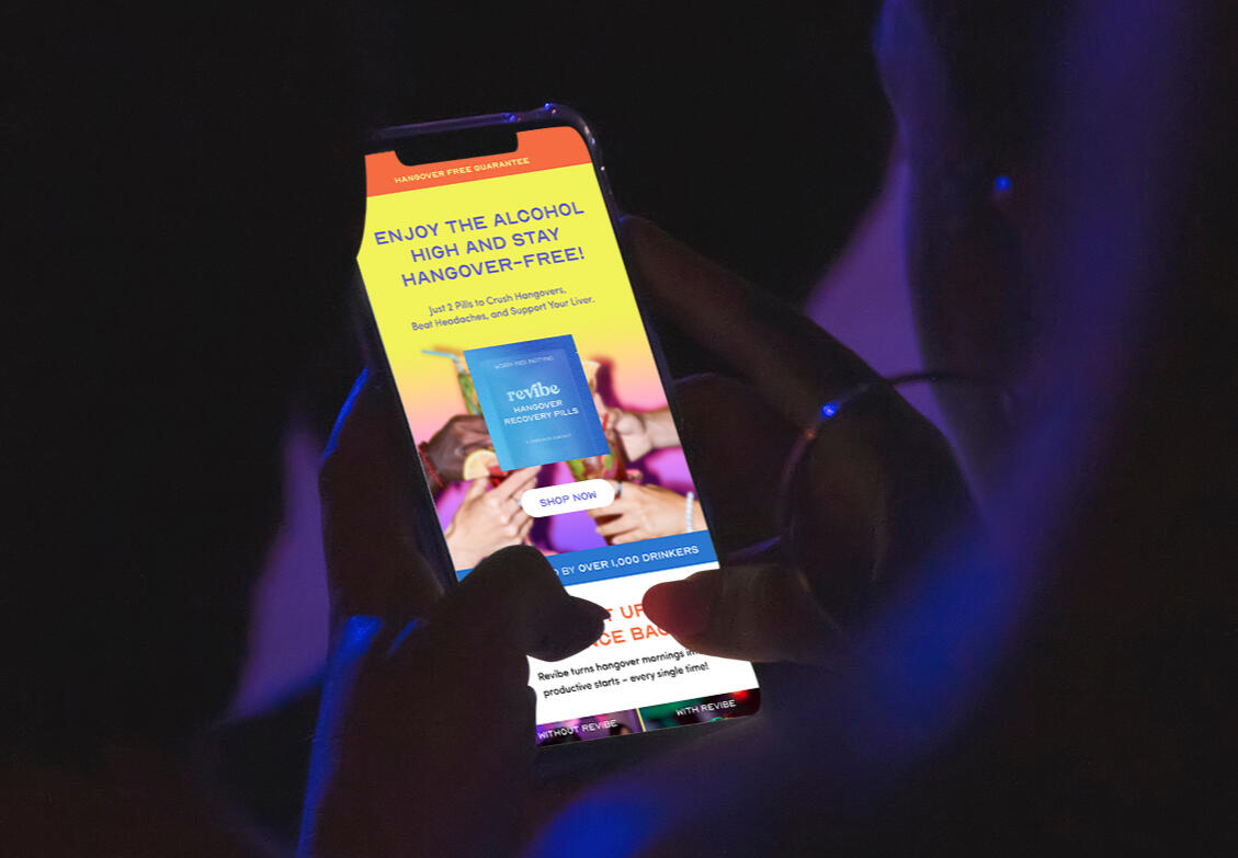 Converting morning-after regrets into sales with a vibrant landing page for a hangover recovery brand.